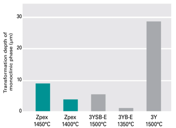 A等級(jí)含有3 mol% 氧化釔和 20 wt% 氧化鋁,該產(chǎn)品經(jīng)過熱等靜壓后具有極高的機(jī)械強(qiáng)度,非常適合生產(chǎn)高強(qiáng)度、高耐水性用途的工業(yè)用零部件。 |
